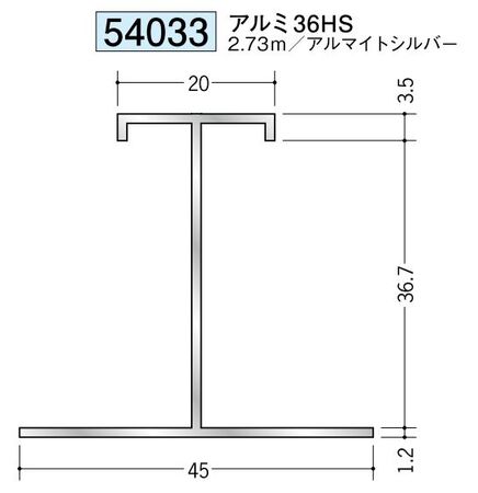 アルミ 断熱材用ジョイナーH型 アルミH型36HS アルマイトシルバー 長さ2.73m