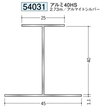 アルミ 断熱材用ジョイナーH型 アルミH型40HS アルマイトシルバー 長さ2.73m