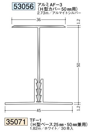 アルミ 断熱材用ジョイナー嵌合型 アルミAF-3(H型カバー50mm用/アルマイトシルバー長さ2.73m)・TF-1(H型ベース25・50mm兼用/ホワイト長さ1.82m)創建