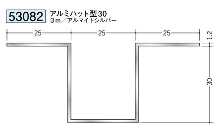 アルミ 断熱材用ジョイナー ハット型 アルミハット型30 アルマイトシルバー 長さ3m