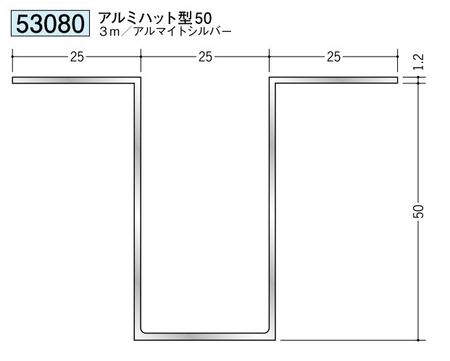 アルミ 断熱材用ジョイナー ハット型 アルミハット型50 アルマイトシルバー 長さ3m