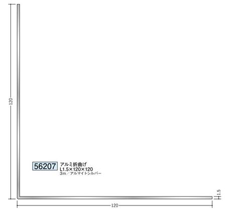 アルミ製アングル(等辺) アルミ折曲げL1×120×120 アルマイトシルバー 長さ3m