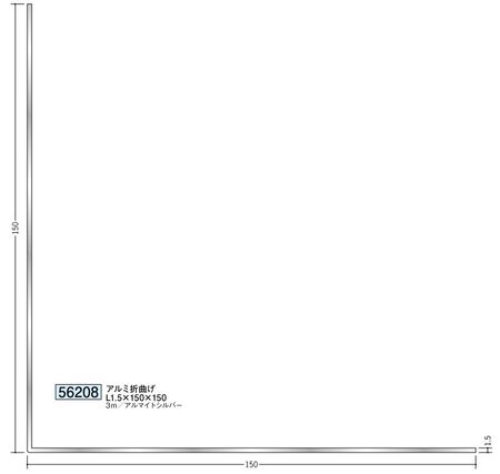 アルミ製アングル(等辺) アルミ折曲げL1×150×150 アルマイトシルバー 長さ3m