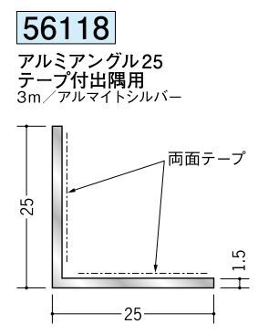 アルミ製テープ付アングル(等辺) アルミアングル25テープ付出隅用 アルマイトシルバー 長さ3m創建