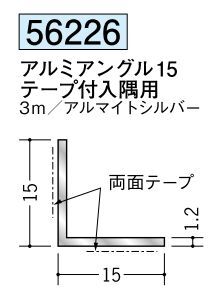 アルミ製テープ付アングル(等辺) アルミアングル15テープ付入隅用 アルマイトシルバー 長さ3m創建
