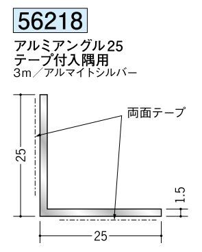 アルミ製テープ付アングル(等辺) アルミアングル25テープ付入隅用 アルマイトシルバー 長さ3m創建
