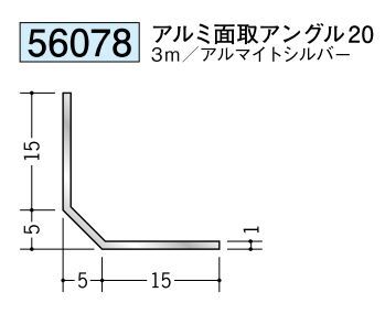 アルミ製面取アングル20 アルマイトシルバー 長さ3m