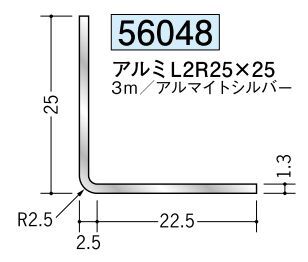 アルミ製R付アングル(等辺) アルミL2R25×25 アルマイトシルバー 長さ3m創建