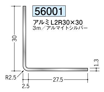 アルミ製R付アングル(等辺) アルミL2R30×30 アルマイトシルバー 長さ3m創建