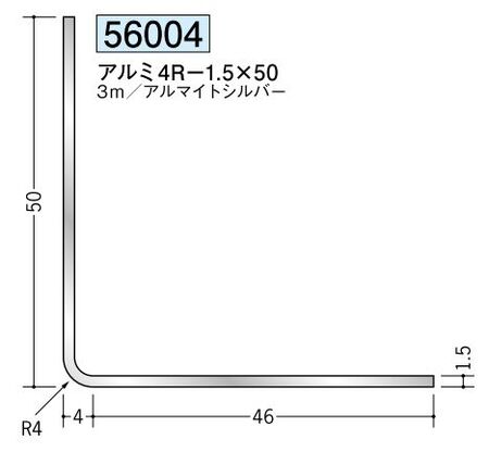 アルミ製R付アングル(等辺) アルミ4R1.5×50 アルマイトシルバー 長さ3m