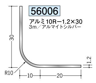アルミ製R付アングル(等辺) アルミ10R1.2×30 アルマイトシルバー 長さ3m