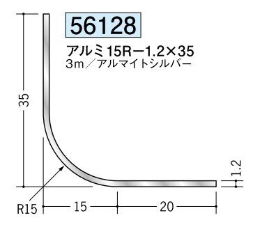 アルミ製R付アングル(等辺) アルミ15R1.2×35 アルマイトシルバー 長さ3m創建