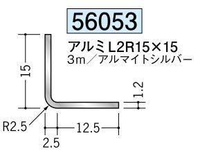 アルミ製R付アングル(等辺) アルミL2R15×15 アルマイトシルバー 長さ3m創建