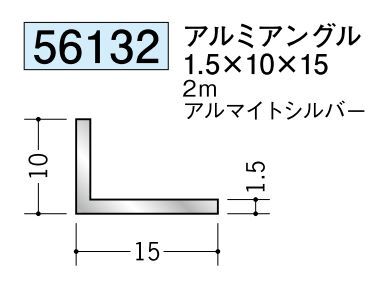 アルミ製アングル(不等辺) アルミアングル1.5×10×15 アルマイトシルバー 長さ2m