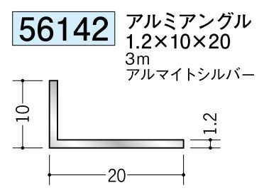アルミ製アングル(不等辺) アルミアングル1.2×10×20 アルマイトシルバー 長さ2m