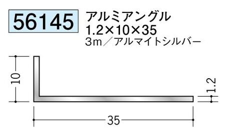 アルミ製アングル(不等辺) アルミアングル1.2×10×35 アルマイトシルバー 長さ2m