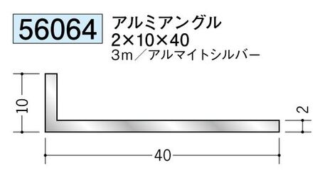 アルミ製アングル(不等辺) アルミアングル2×10×40 アルマイトシルバー 長さ2m