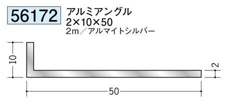 アルミ製アングル(不等辺) アルミアングル2×10×50 アルマイトシルバー 長さ2m