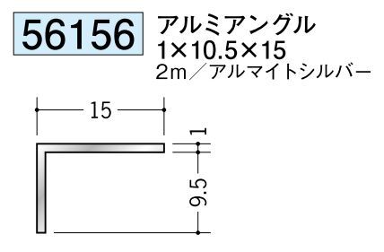 アルミ製アングル(不等辺) アルミアングル1×10.5×15 アルマイトシルバー 長さ2m創建