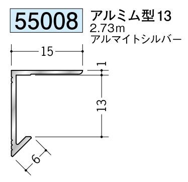 アルミ製?型見切縁 アルミム型13 アルマイトシルバー 長さ2.73m