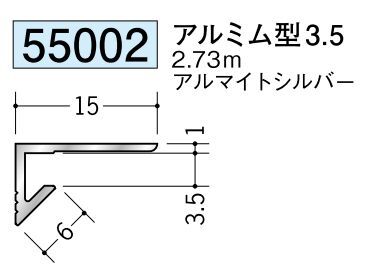 アルミ製?型見切縁 アルミム型3.5 アルマイトシルバー 長さ2.73m