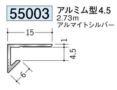 アルミ製?型見切縁 アルミム型4.5 アルマイトシルバー 長さ2.73m