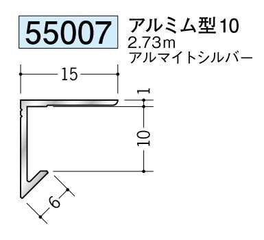アルミ製?型見切縁 アルミム型5.5 アルマイトシルバー 長さ2.73m