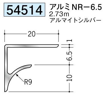 アルミ製?型見切縁 アルミNR-6.5 アルマイトシルバー 長さ2.73m