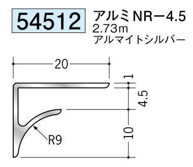 アルミ製?型見切縁 アルミNR-4.5 アルマイトシルバー 長さ2.73m創建