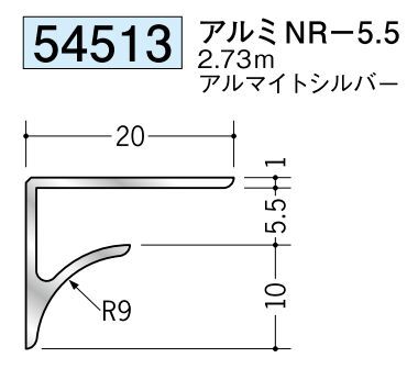 アルミ製?型見切縁 アルミNR-5.5 アルマイトシルバー 長さ2.73m