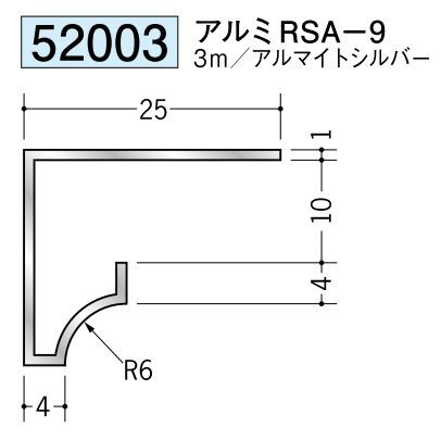 アルミ製?型見切縁 アルミRSA-9 アルマイトシルバー 長さ3m