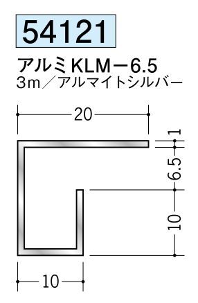 アルミ製?型見切縁 アルミKLM-6.5 アルマイトシルバー 長さ3m