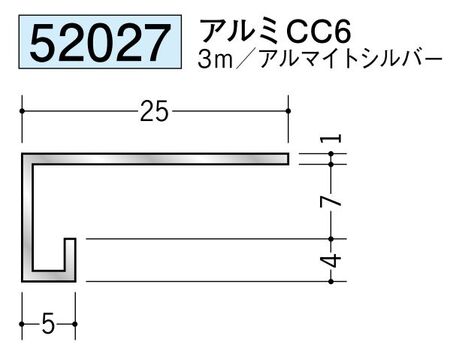 アルミ製コ型見切縁 アルミCC6アルマイトシルバ- 長さ3m