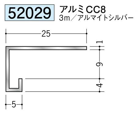 アルミ製コ型見切縁 アルミCC8 アルマイトシルバ- 長さ3m