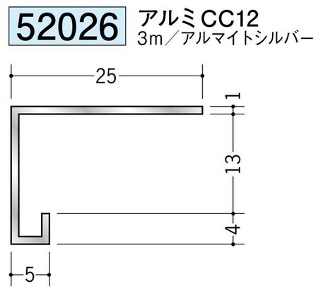 アルミ製コ型見切縁 アルミCC12 アルマイトシルバ- 長さ3m