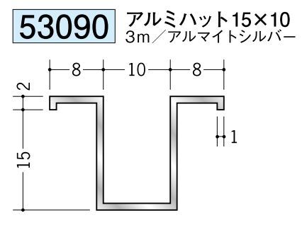 アルミ製ハット型ジョイナー アルミハット15×10 アルマイトシルバー 長さ3m