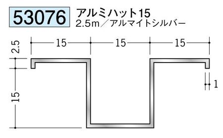 アルミ製ハット型ジョイナー アルミハット15 アルマイトシルバー 長さ2.5m