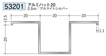 アルミ製ハット型ジョイナー アルミハット20 アルマイトシルバー 長さ2.5m