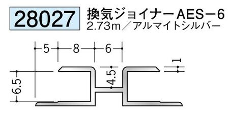 アルミ製ハット型ジョイナー 換気ジョイナーAES-6 アルマイトシルバー 長さ2.73m創建