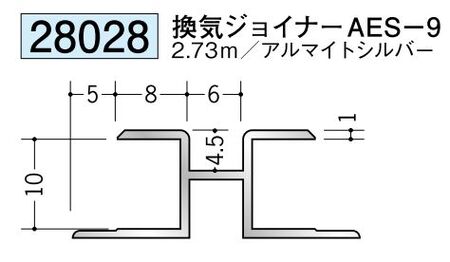 アルミ製ハット型ジョイナー 換気ジョイナーAES-9 アルマイトシルバー 長さ2.73m創建