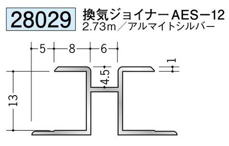 アルミ製ハット型ジョイナー 換気ジョイナーAES-12 アルマイトシルバー 長さ2.73m創建