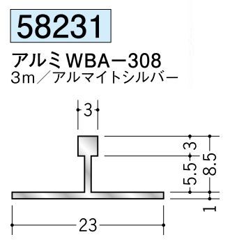 アルミ製T型ジョイナー アルミWBA-308アルマイトシルバー 長さ3m創建