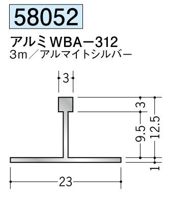 アルミ製T型ジョイナー アルミWBA-312アルマイトシルバー 長さ3m創建