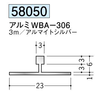 アルミ製T型ジョイナー アルミWBA-306 アルマイトシルバー 長さ3m