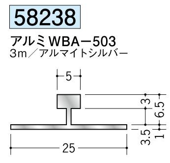 アルミ製T型ジョイナー アルミWBA-503 アルマイトシルバー 長さ3m創建