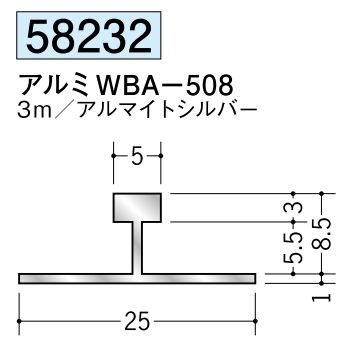 アルミ製T型ジョイナー アルミWBA-508アルマイトシルバー 長さ3m