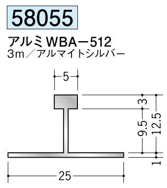 アルミ製T型ジョイナー アルミWBA-512アルマイトシルバー 長さ3m創建