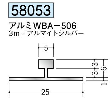 アルミ製T型ジョイナー アルミWBA-506 アルマイトシルバー 長さ3m