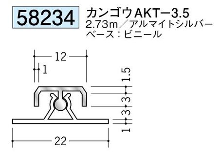 アルミ製カンゴウジョイナー(H型) カンゴウAKT-8.5 アルマイトシルバー 長さ2.73m
