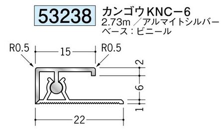 アルミ製カンゴウジョイナー(コ型) カンゴウKNC-6 アルマイトシルバー 長さ2.73m創建